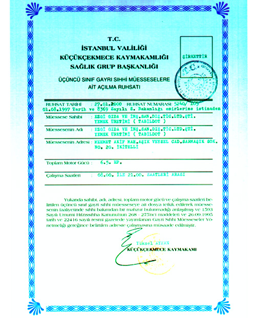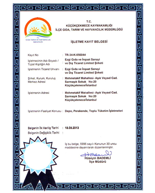 İşletme Kayıt Numaramız: TR-34-K-056044