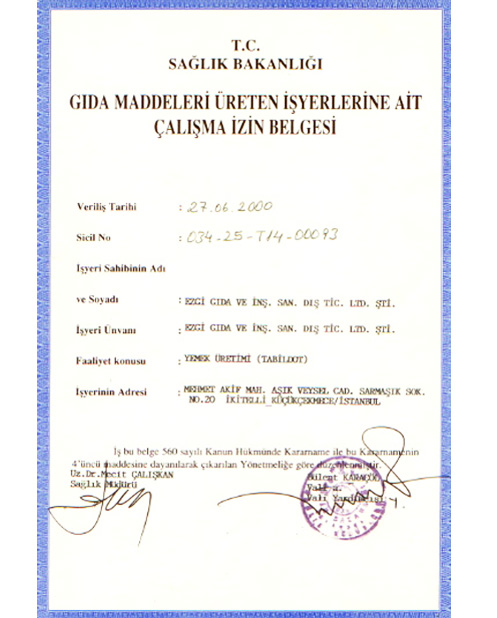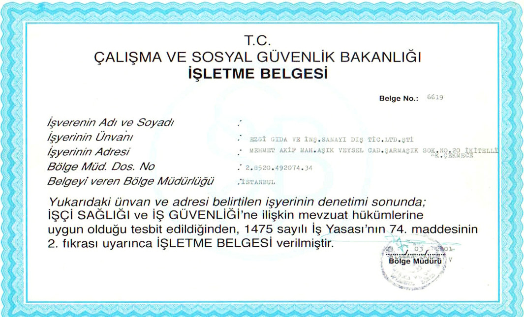İşletme Adı: Ezgi Gıda