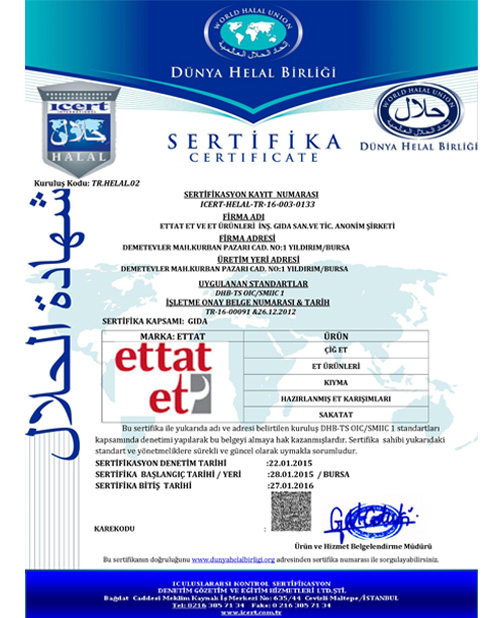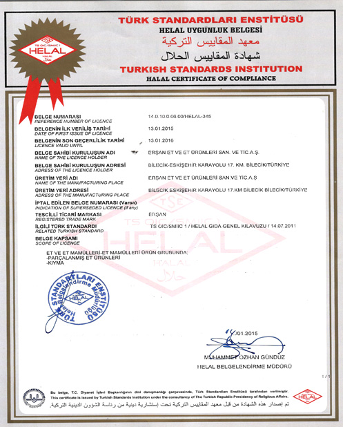 Beyaz Et: Helal Kesim / Kuru Yolum Sertifikası (Yerli Üretim)