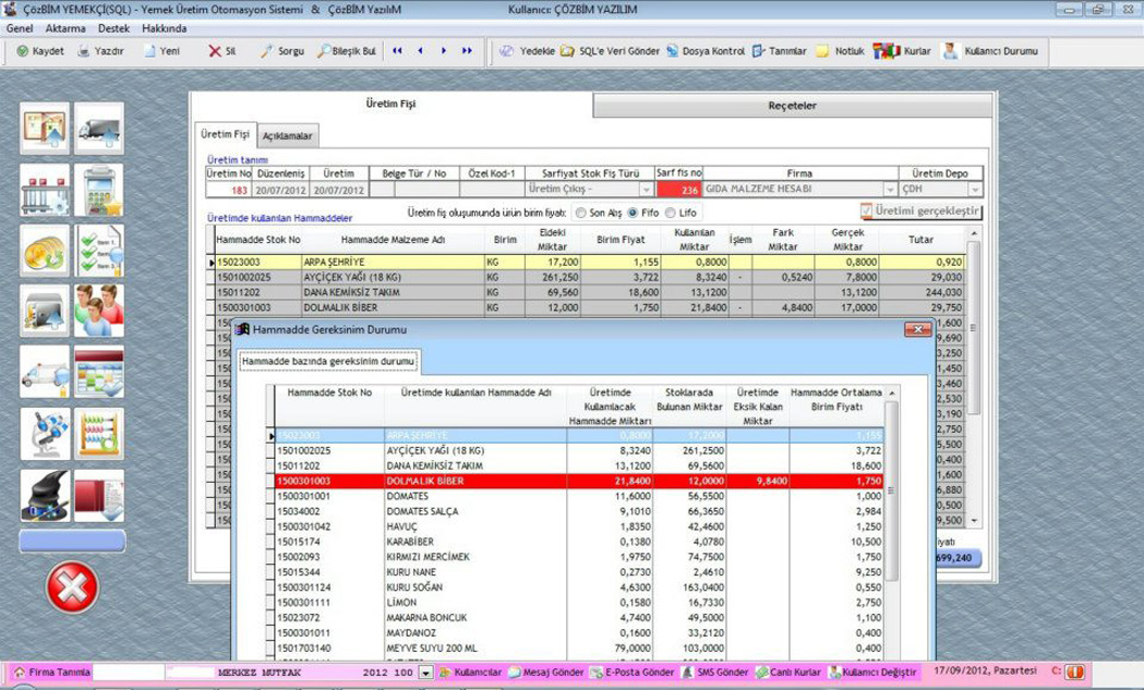 Türkiye'de Catering Sektöründe ÇözBİM YEMEKÇİ MRP-ERP programının dışında bu raporları verebilen başka bir yazılım olmamakla beraber üretimimizi 2006 Yılından bugüne tamamen entegre etmiş bulunmaktayız.